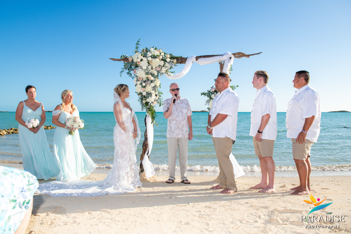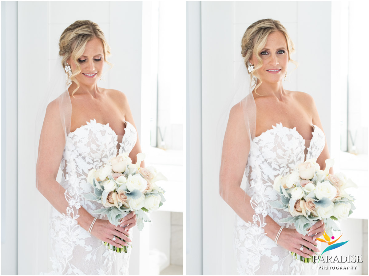 Finally, the wedding was just days away, Tammy and Mark were enjoying the luxurious villa with their close family, and we met once again to go over the timeline and have a walk-through. For a photographer at a villa wedding, this is a crucial step to examine how the sunlight will affect specific areas at different times of the day, ensuring everything from the arch placement to the group portrait location is optimized for breathtaking imagery. Sandy Bottom Villa has its own private beach and we also had the tides to contend with. Whether it would be high or low tide at the time of the ceremony would affect how much sand was exposed on the beach and we needed space for their guests to sit. Fortunately, it worked out perfectly to have the arch and chairs exactly where we wanted them for the best lighting too.