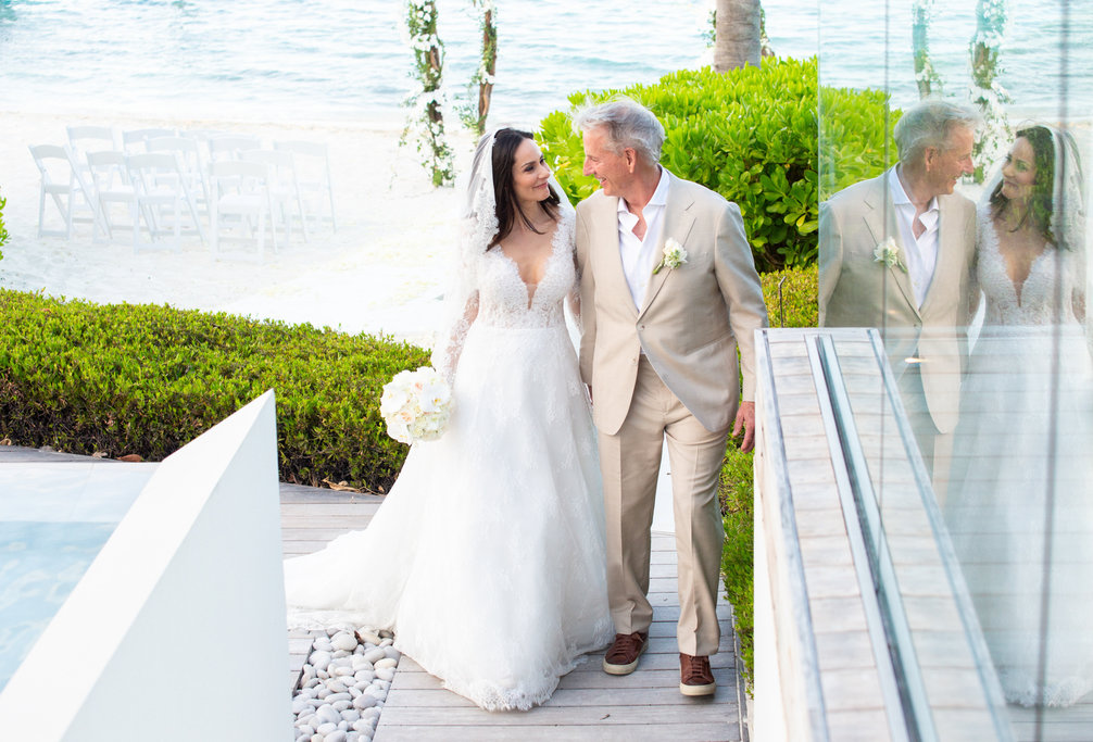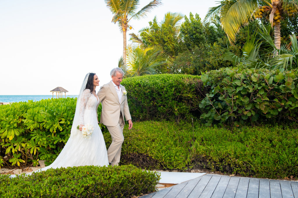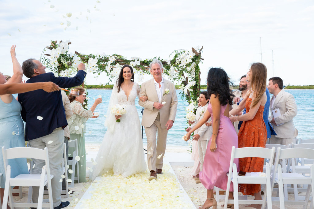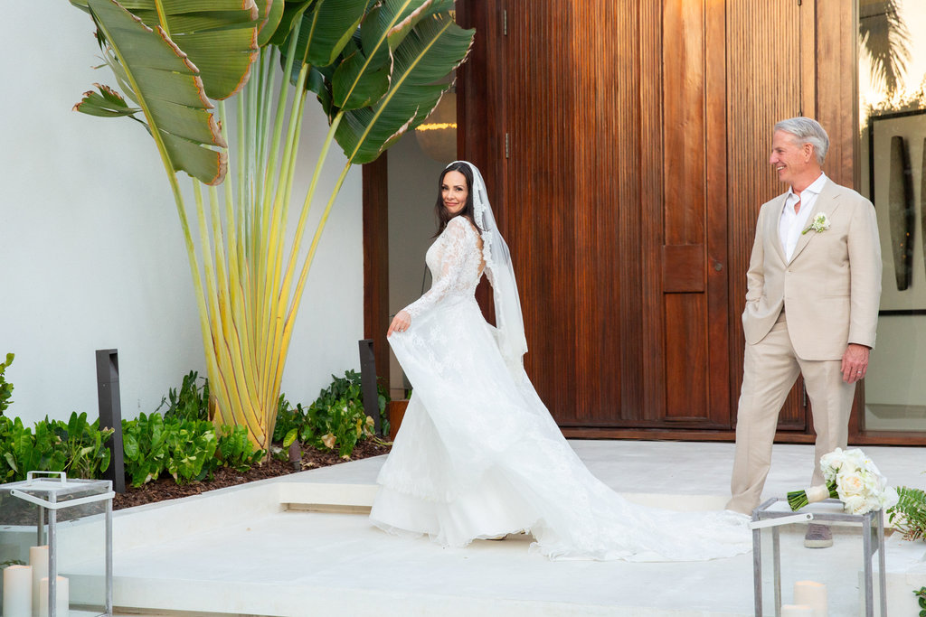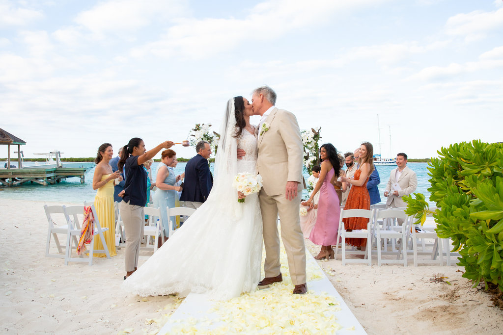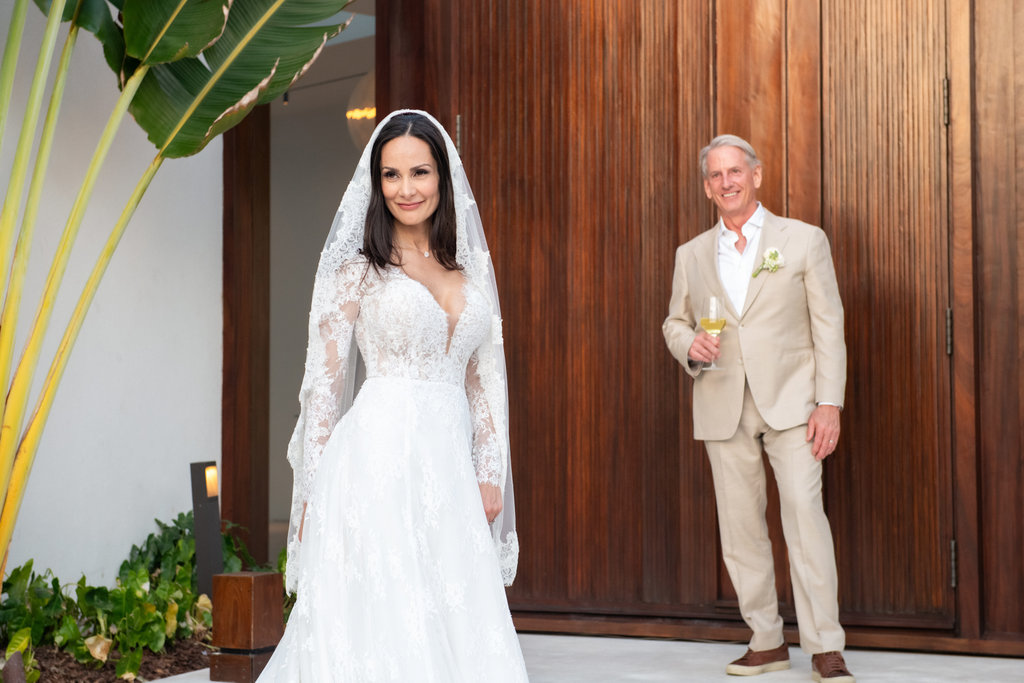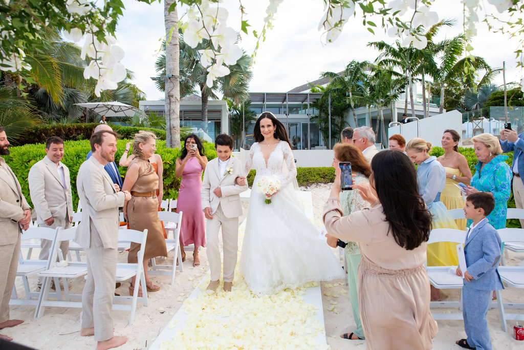 Heidi and John’s ceremony took place just steps from the ocean, with the villa’s private beach serving as the backdrop. But what made it especially memorable was the personal touch: the groom’s mother officiated, and Heidi’s son walked her down the aisle.