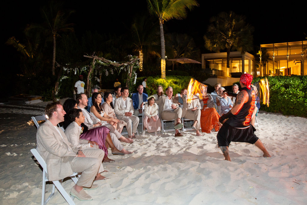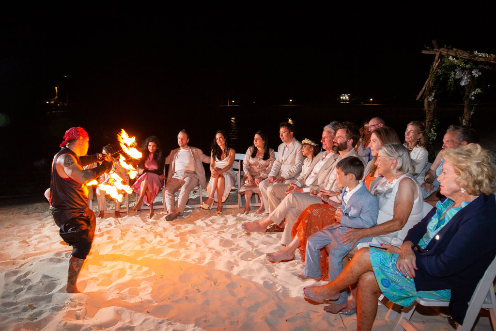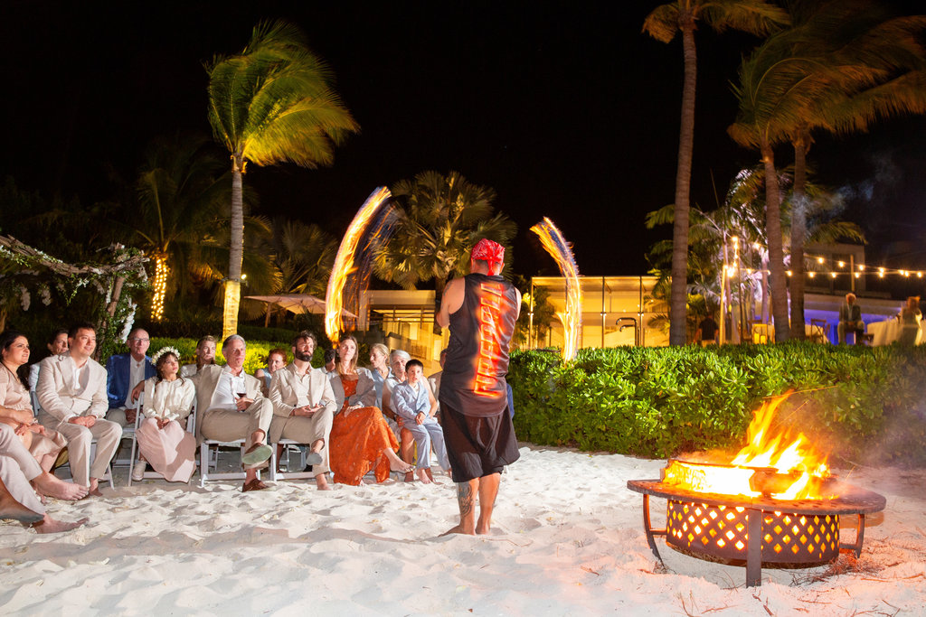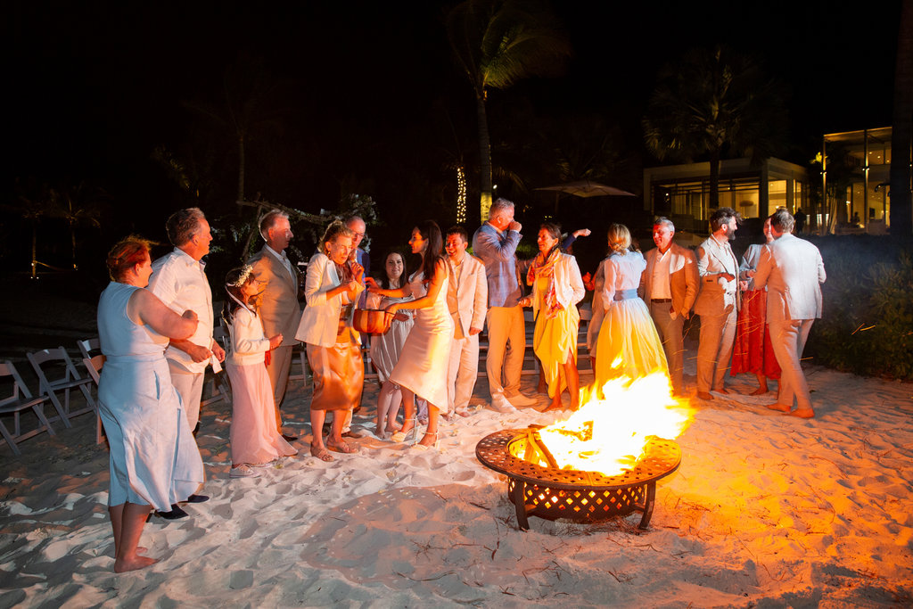 Following dinner, guests were led down to the beach for a Persian fire ceremony—a tradition close to Heidi’s heart. Everyone gathered in a circle, sending warm wishes into the flames as they crackled beneath the starlit sky.