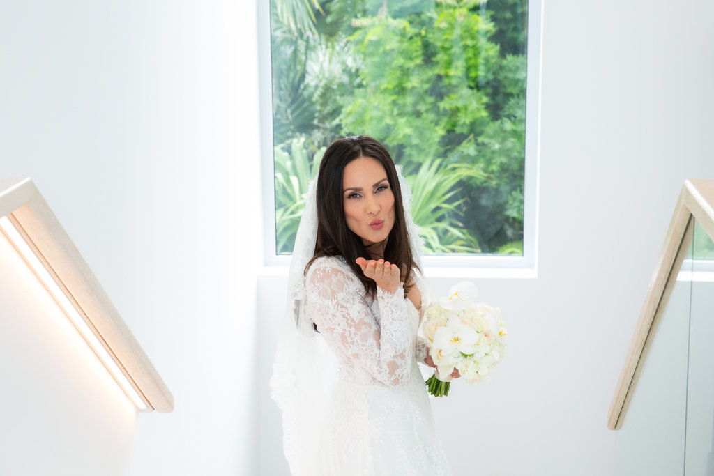 After saying “I do,” the couple slipped away for portraits around the villa grounds. We made sure to include the property’s signature fan palm, the stone steps leading to the garden, and of course, the beach at golden hour.