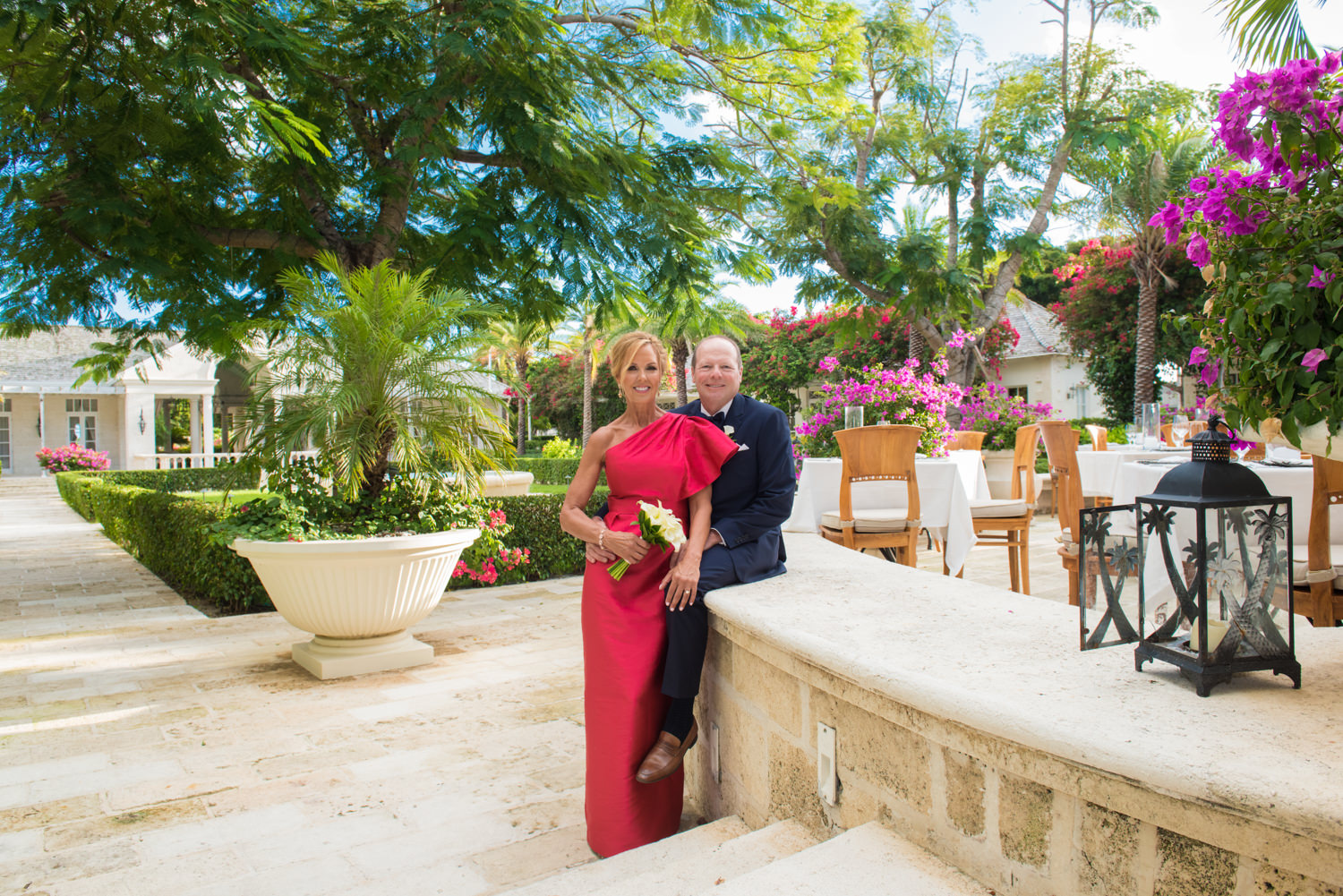 From the very beginning Lori & Bob knew they wanted theirs to be an intimate wedding. It was meaningful to them that they were here with their kids for the special occasion. Of all the places they could have chosen for a destination wedding, they chose the beautiful Turks and Caicos, which is like their second home. So they wanted the photos of their experience to be just as meaningful. As owners at the five star beach front resort, we knew that photographing them in the garden areas of The Palms was a must. We knew that the beauty of the gardening would be be hard to ignore, and the blooming bougainvillea would complement Lori’s dazzling non traditional dress. A short session was all we needed to capture some winning bride and groom portraits before heading to the ceremony. The sunset over Grace Bay Beach that evening was stunning. It was like a toast to Bob and Lori’s tying of the knot. It was also a great example of why we recommend the personalized photography timeline. The sky changed from a sunny to a dramatic sunset to dreamy twilight. It was beautiful experience for Lori and Bob and a joyful one for us. As Turks and Caicos’ top professionals in wedding photography, it is our aim to exceed our bride and grooms’ expectations, and we were so happy to be doing it yet again.